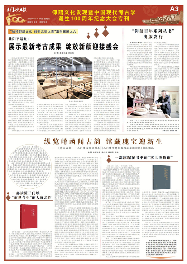 此前,在阅读两部图书的样书后,两位国内文博界知名专家——中国文化遗产研究院原总工程师、中国文物报社原总编辑曹兵武与河南博物院副院长、河南省博物馆学会副会长、研究馆员张得水分别为两书欣然作序,对图书呈现出的研究成果转化、历史文脉梳理、文化自信提振等方面均给予高度评价。这两部备受业内瞩目且诞生于“两个100周年”重要时间节点的历史文化大书,蕴含了哪些震烁崤函的崭新研究成果?又收录了哪些三门峡古往今来的璀璨文物?对三门峡地域文化的研究将起到哪些作用?近日,带着这些人们关心的问题,记者走进了三门峡市博物馆,为您一一“揭秘”。