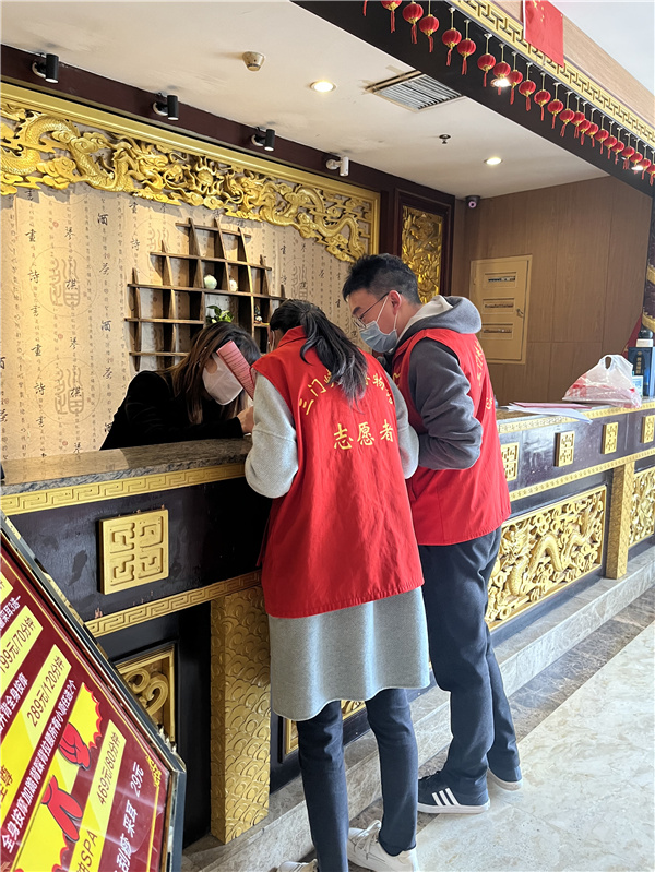 活动中党员志愿者向沿街商超、饭店、酒店等场所发放“场所码”应用工作通知,开展“场所码”的注册和申领,并耐心讲解“场所码”的扫码流程等,实现了分包路段30余家场所“场所码”申领、张贴的全覆盖。