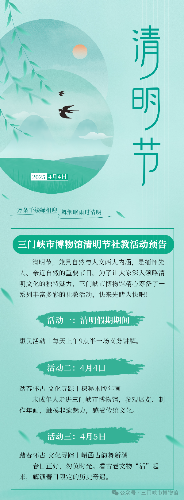 踏春怀古 文化寻踪丨三门峡市博物馆清明节社教活动预告来啦!