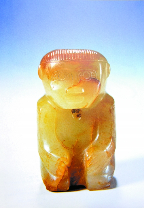商代跽坐人形玉佩,安阳殷墟妇好墓出土