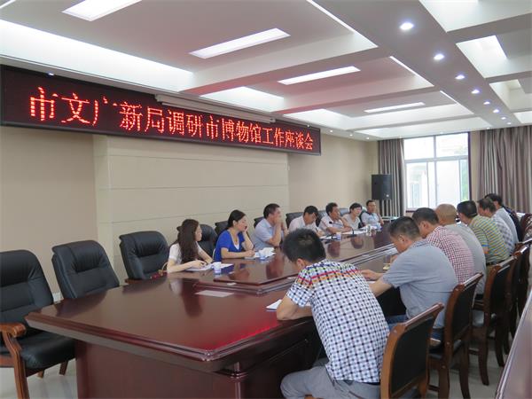 7月22日上午,市文广新局局长、党委书记梅良川到市博物馆调研工作,局领导张书超、宁会振、赵利英、李丽陪同调研。