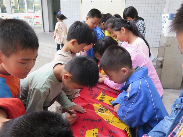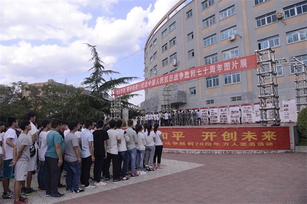 同时,为更好的发挥博物馆“基地、阵地”作用,从9月10日起,市博物馆组织相关人员在全市各学校、社区、部队进行专题巡展,先后为市职业技术学院、市育才小学、市实验高中、市实验中学、市实验小学、市消防支队等师生及部队官兵16000余人进行义务讲解350余场次。校园巡展是此次巡展工作的重中之重,主要以新学年“开学第一课”的方式,为同学们讲述那段中华儿女同仇敌忾、共赴国难、救亡图存的伟大抗战历史,使他们接受了一次生动的爱国主义教育。巡展中,为增强互动,更好的宣传和弘扬抗战精神,市博物馆还发起了“铭记历史 缅怀先烈 珍爱和平 开创未来”的万人签名活动,以此来表达对历史的铭记,对先烈的缅怀,对和平的向往与坚守,对祖国未来繁荣昌盛的期待。
