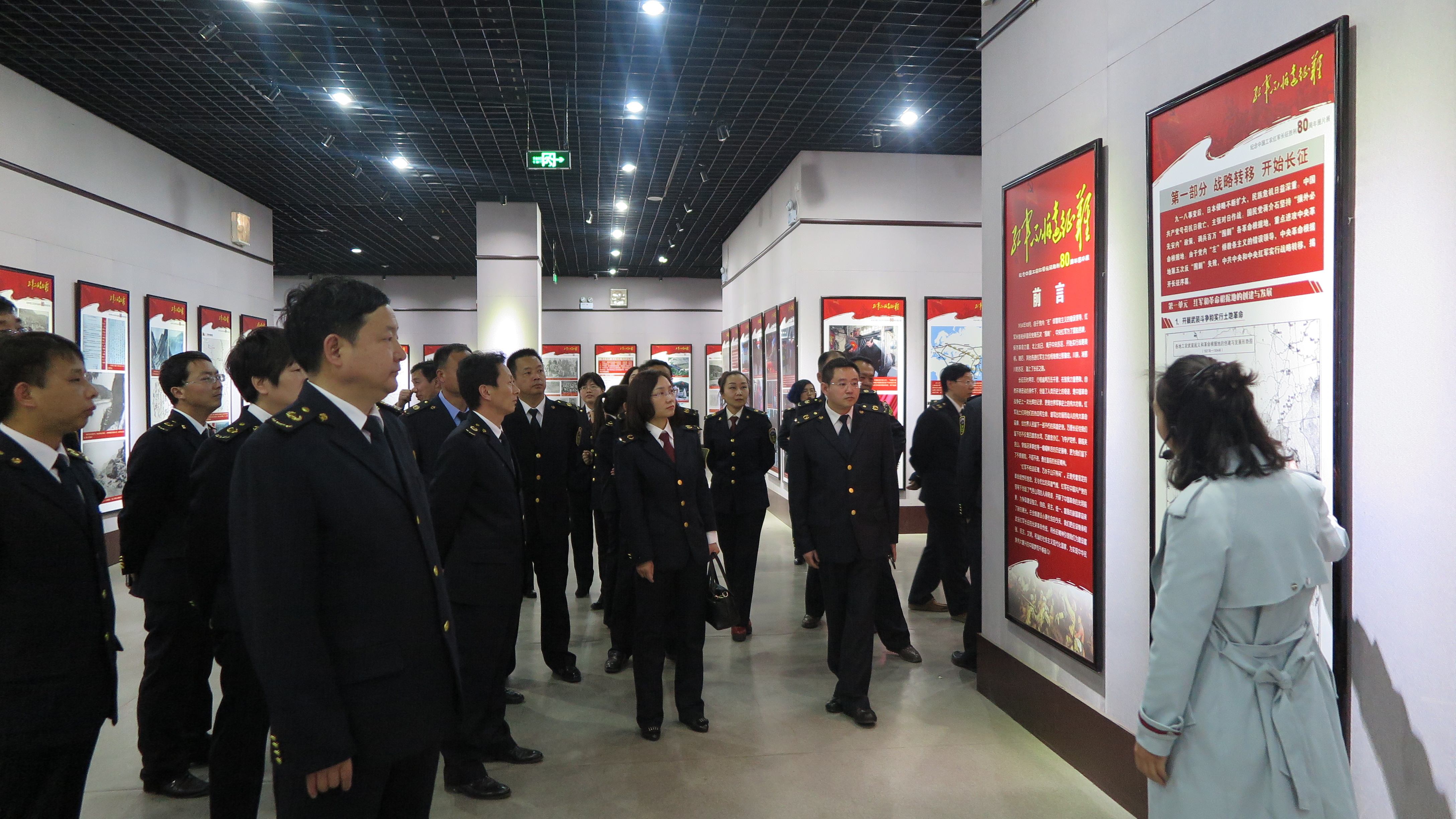 在第一展厅,各位领导和同志们认真观看,细细聆听,从“突破围剿”到“血战湘江”;从“通道转兵”到“遵义转折”;从“鏖战娄山关”到“飞夺泸定桥”;从“强渡大渡河”到“翻越夹金山”……这一幅幅画面为各位领导和同志们再现了那段悲壮的长征史实,感受到了红军将士不屈不挠的坚定信念和一往无前的英雄气概,接受了一次深入灵魂的精神洗礼。参观结束后,大家纷纷表示受益匪浅,不虚此行。