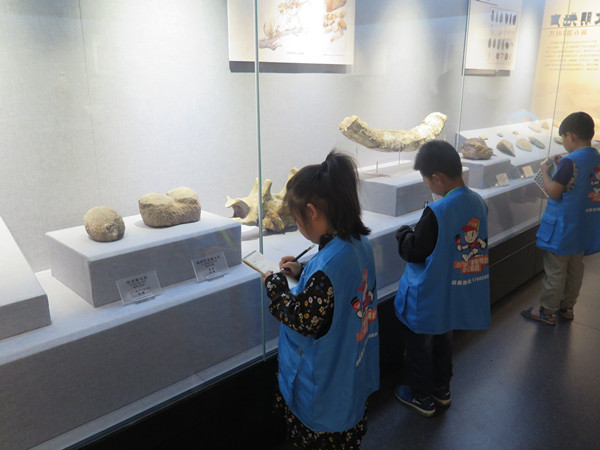 于当天下午还邀请了众多青少年前来参观在第三展厅推出的临时展览《名郡遗珍——弘农金石拓片特展》,并在李馆长的带领下开展了拓片制作体验活动。