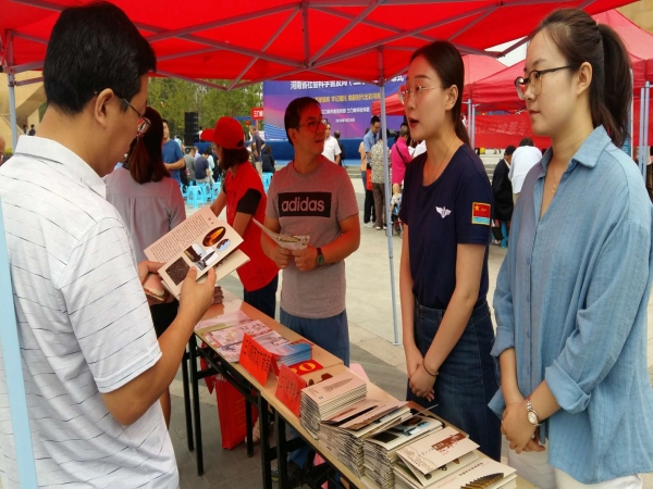 2018年9月10日上午,河南省社会科学普及周(三门峡)系列活动开幕式在黄河公园北门隆重举行,为了让更多的人可以进入三门峡市博物馆参观学习,我们通过此次活动举办了“流动博物馆基层行”,让每一个人都有机会接近博物馆、了解博物馆。无论是城市还是农村、无论是工人、农民或是学生、老人,流动展览可以让大家在家门口就了解历史、接受信息、学习知识、开拓视野。本次外宣采用了“展板+解说”的方式,向每一个前来参观的市民发放宣传单、折页,介绍馆藏文物、陕州故城、历史故事等内容。讲解员各具特色的讲述吸引了众多市民的驻足,通过讲解,观众不仅了解了陕州故城,更是对博物馆产生了浓厚的兴趣,并且询问了日常的开馆时间,所在地址、文物知识等相关事宜。