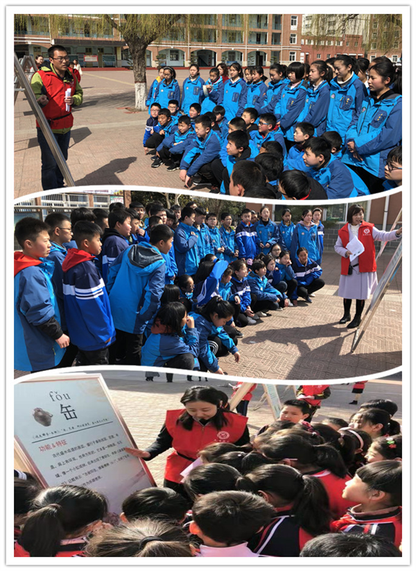 此次活动由市博物馆、市教育局和三门峡日报志愿者服务队联合开展。活动中,志愿者们利用展板为学生讲解商周青铜礼器上的“盨、甗、簋、簠、敦、鬲、俎、觚、觯、觥、盉、斝、罍、卣、彝、瓿、缶、匜”等18个日常生活中难得一见的生僻字。在志愿讲解员的讲解下,这些青铜礼器的读音、用途强烈激发了学生的求知欲,他们专精覃思、细心聆听,不时地做着笔记。通过学习,孩子们加深了对器物及字形的认识和理解,深刻认识了这些器物的名称、时代、用途。随后,我馆志愿者又利用精心制作的课件,讲解鼎、鬲、斝等古代青铜器物,为孩子们上了一堂内容丰富的历史文化课。