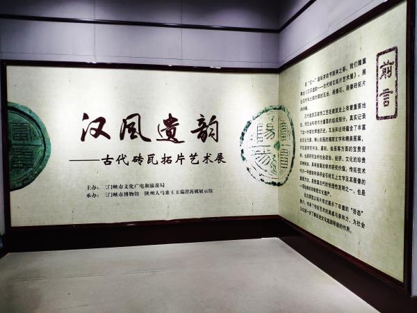 在“五一”国际劳动节到来之际,《汉风遗韵——古代砖瓦拓片艺术展》在三门峡市博物馆第三展厅开展,展出汉代和北朝时期的瓦当、画像石、画像砖拓片共89幅。此次展览由三门峡市文化广电和旅游局主办,三门峡市博物馆、陕州人马寨王玉瑞澄泥砚展示馆联合承办。
