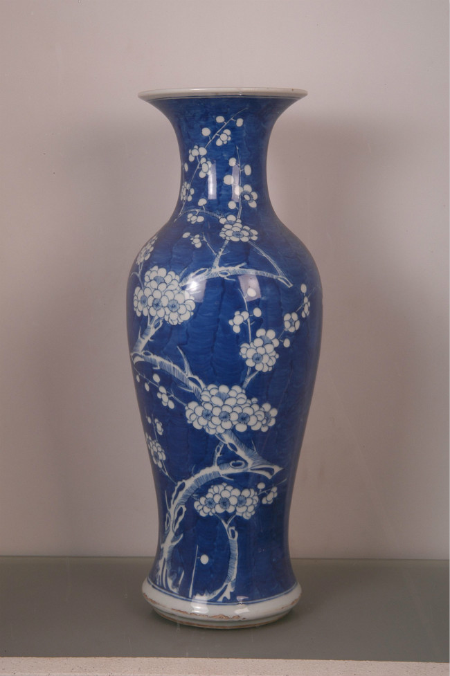 > 清代蓝釉白梅瓷瓶